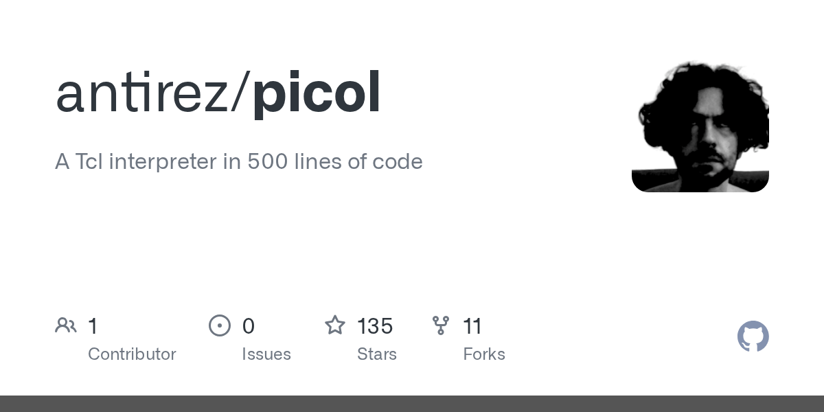 Article URL: https://github.com/antirez/picol Comments URL: https://news.ycombinator.com/item?id=47032235 Points: 22 # Comments: 18