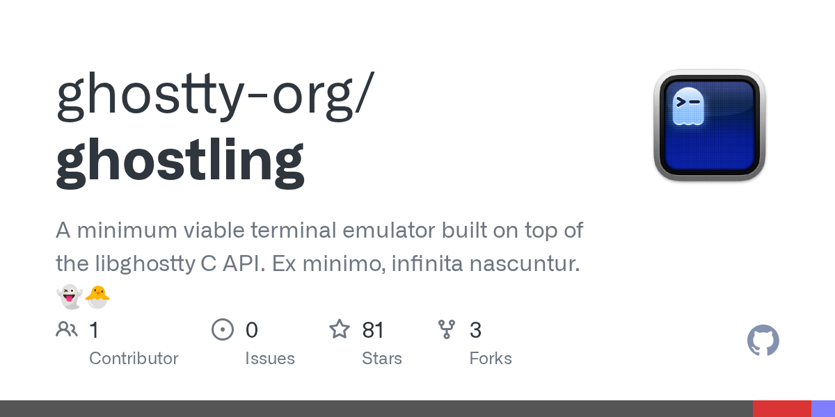 Article URL: https://github.com/ghostty-org/ghostling Comments URL: https://news.ycombinator.com/item?id=47461378 Points: 45 # Comments: 8