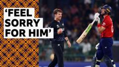 Jos Buttler's struggles continue at the T20 World Cup as the England batter is caught behind for a two-ball duck against New Zealand, making it five consecutive innings without reaching double figures.