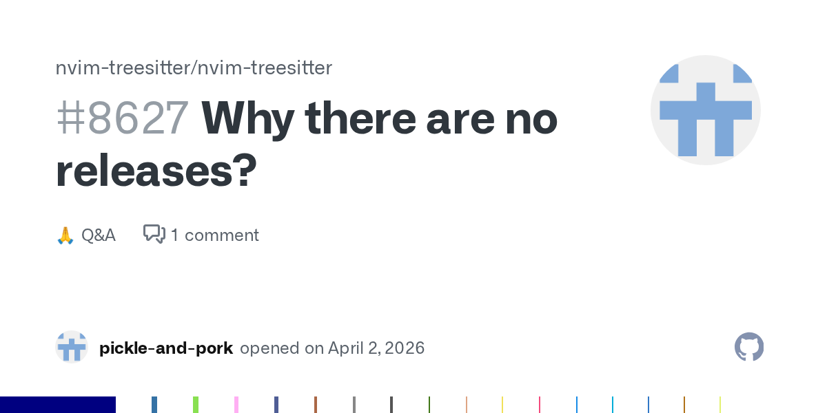 Article URL: https://github.com/nvim-treesitter/nvim-treesitter/discussions/8627 Comments URL: https://news.ycombinator.com/item?id=47644667 Points: 56 # Comments: 3