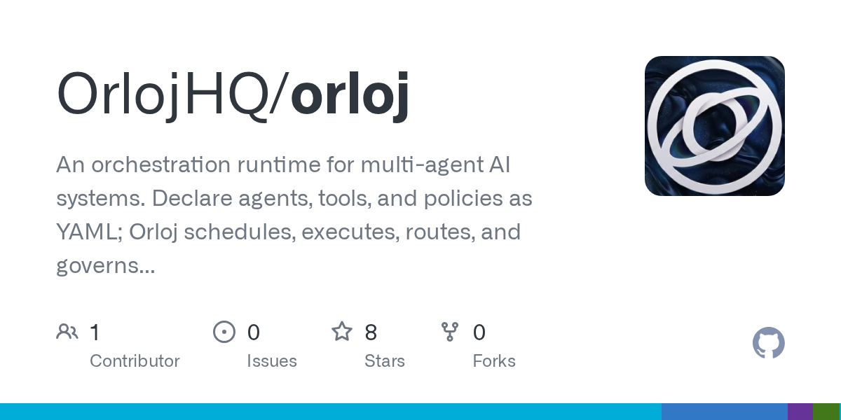 Hey HN, we're Jon and Kristiane, and we're building Orloj ( https://orloj.dev ), an open-source (Apache 2.0) orchestration runtime for multi-agent AI systems. You define agents, tools, policies, and workflows in declarative YAML manifests, and Orloj