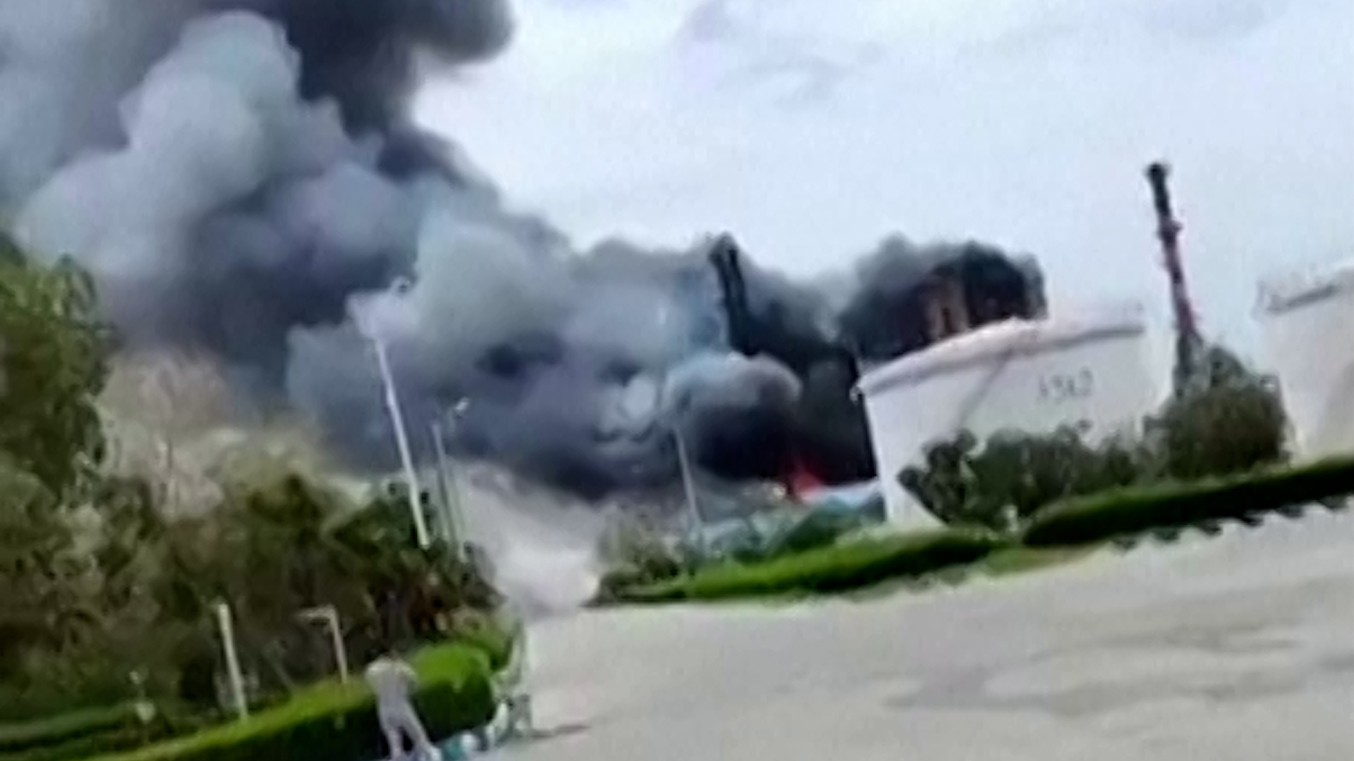 Black plumes of smoke from an oil refinery on Iran’s Lavan Island were seen.